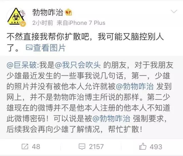 大戏还未落幕,最新的剧情是,自称小哥朋友的人发声,指责博主的行为都未被小哥本人许可,