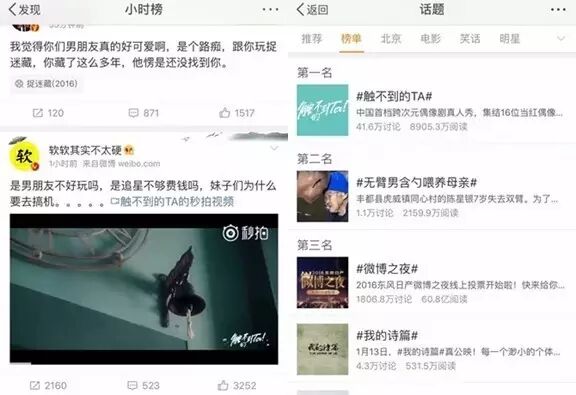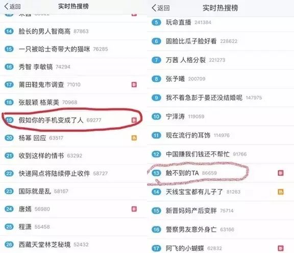 而相关关键词如“假如你的手机变成人”、“触不到的TA”等一度上到微博热门搜索榜前列。