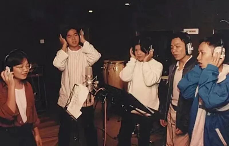 长相普通、戴着近视眼镜的梁静茹,没有被安排做主唱,而是做和声。