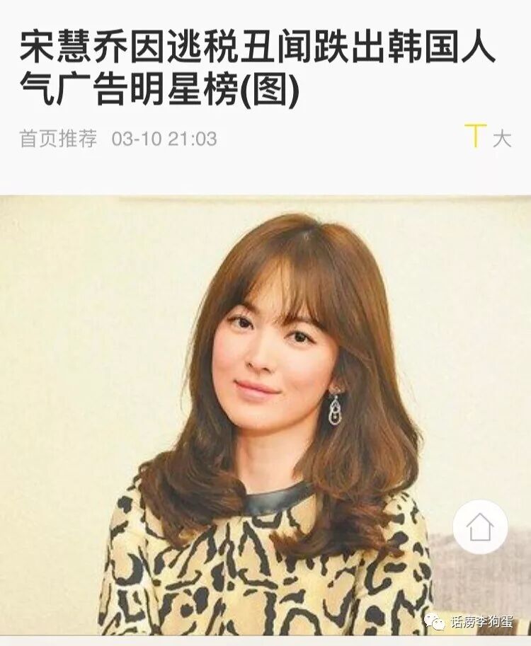 宋慧乔作为韩国超人气演员,曾在早前被曝出在2009年至2011年三年时间里通过虚假申报收入等方式逃税25亿韩元(约1507万元)。宋慧乔的经纪公司对此回应,宋慧乔的税务申报一直委托给第三方税务代理公司进行,宋慧乔此前一直不知道自己的税务申报存在问题,而且在接到税务机关通知后宋慧乔已交清了欠缴的税款和滞纳金共38亿韩元(约2291万元)。