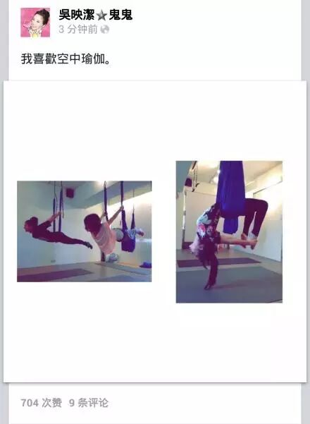 其实鬼鬼吴映洁也有一套自己的瘦身秘诀,通过饮食和运动瘦出好身材。当然她私下还会好好的运动,她特别喜欢练习空中瑜伽。为了自己的形象,为了身材,她还是很卖力的哦。