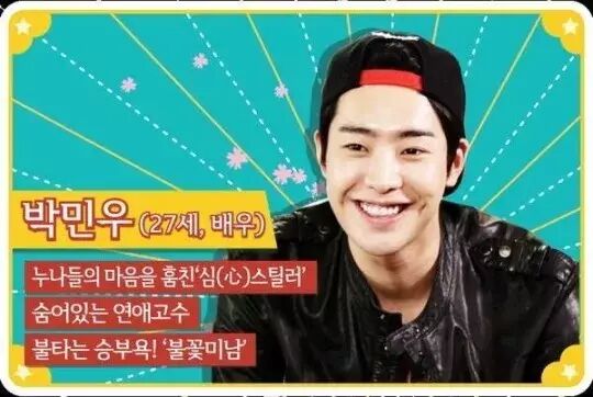 如今正在服兵役的朴敏雨在2011年时,通过出演电视剧《我的公主》正式出道。在同年,他因为出演了tvN的浪漫喜剧《花美男拉面馆》,甜美的笑容,及深深的小酒窝都让观众记住了这个暖男。