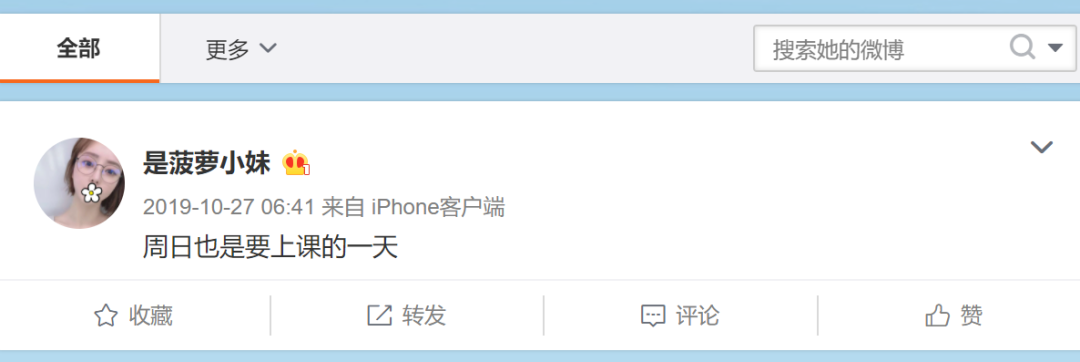 不过目前菠萝小妹已经删掉了微博,只剩下了2019年的一条“周日也是要上课的一天”的动态。