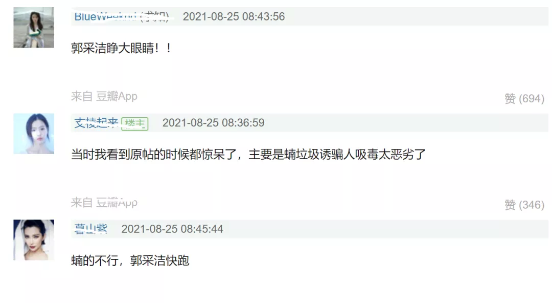 消息一经曝光,立刻引起网友围观和讨论,网友纷纷喊话让郭采洁快跑。