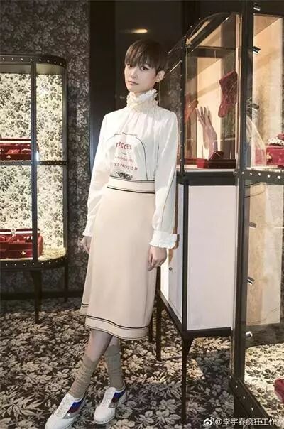 近日春春出席Gucci腕表南京活动的时候穿着一身米色衬衫+米黄色半裙现身,惊呆了所有小伙伴,万万没想到春春穿上Lady Style的衣服居然这么女人味,也算是成功跟女人味匹配啦!
