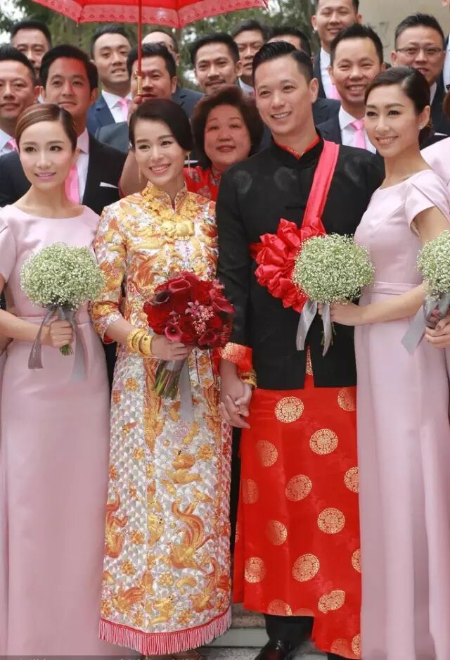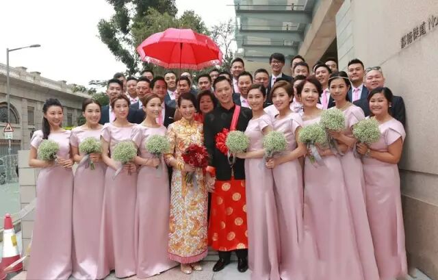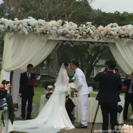 上午一对新人行中国传统仪式,分别向双方父母敬茶。下午则走西式!在草地上一吻定情!