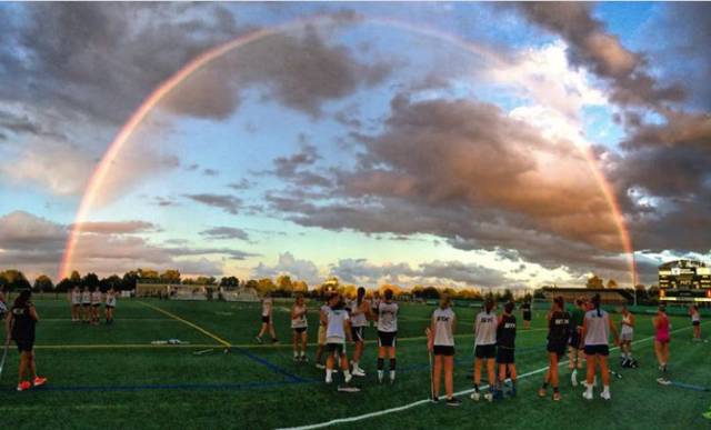 结束比赛的学生刚好邂逅了彩虹