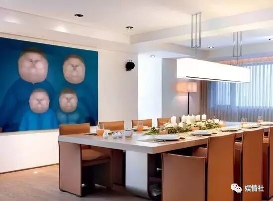首先是门厅里挂的那副《绿狗》,由画家周春芽所画,林依轮07年以200万购得,10年同系列曾经拍出997万天价,在2013胡润艺术榜中,周春芽以4.7亿元的总成交额成为最贵的在世艺术家。