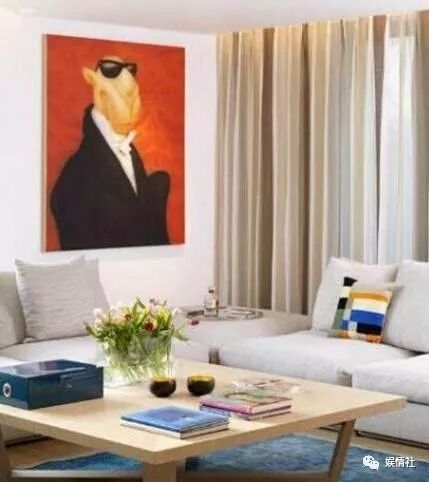 客厅里这幅《夕阳下的骆驼》是周铁海的成名作,林依轮07年在纽约拍来的,当时只花了6万1千美元。而在2014年,周铁海的作品已经可以拍到500万人民币。