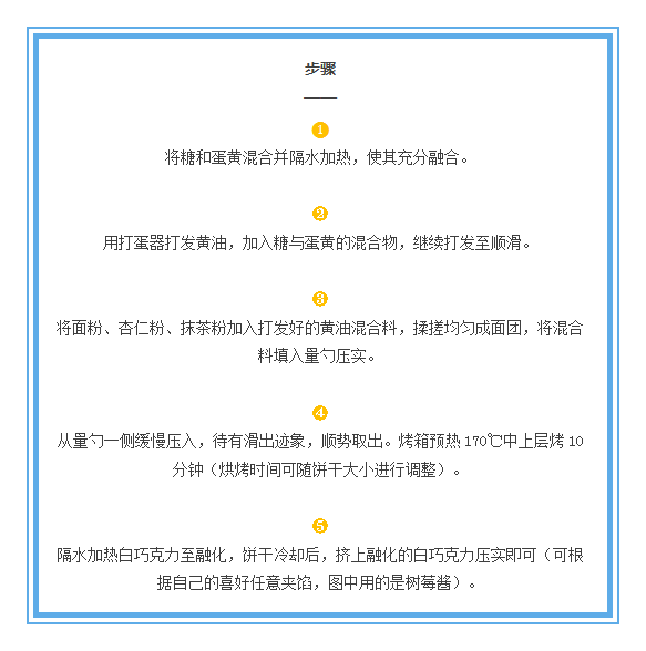 黄油90g/蛋黄1个/白巧克力50g/树莓酱