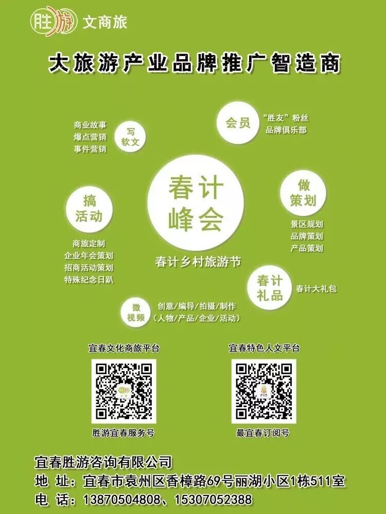 胜利来自原点,让我们一起走心游。当我幡然醒悟,便决定固守家乡,于是在宜春创办了一个公司,公司名字就以韩愈"莫以宜春远,江山多胜游"为出处叫"胜游",业务范围定位在咨询,服务于旅游+特色产业,专业从事品牌策划、新媒体营销和会展经营。结合自己20年在外营销工作联系商界人士广泛的特点,以文为媒,做商旅服务。如此,“文商旅”三个字便自然涌现。回想自己的工作经历,何尝不是一种文商旅的状态。商业经营常常就是在路上的过程,创业者爱唱的一首歌就叫《在路上》。胜游公司要经营文商旅,冷跃进要创建一种新商业模式,就叫文商旅!