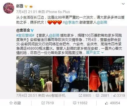 特别是黄晓明的老同学赵薇,作为长江沿岸城市芜湖的土生土长的芜湖人,在这次暴雨给芜湖带来灾难的时候,赵薇也一人捐献了100万!