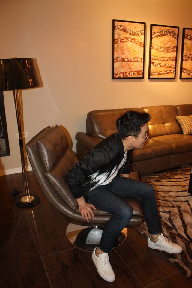 佟大为似乎对晚安的这张皮椅很感兴趣