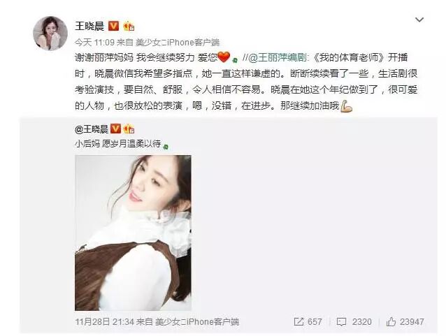 在胡歌的介绍下,王晓晨认识了金牌编剧王丽萍(开头提到过),后者认她做干女儿。