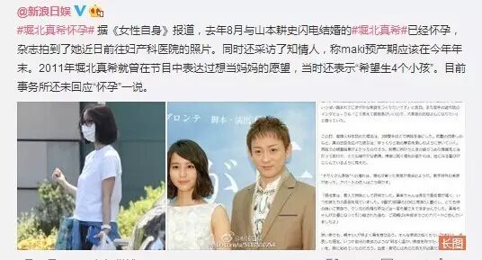 接着刚说完山本耕史快当爸了,堀北真希就被曝怀孕了……