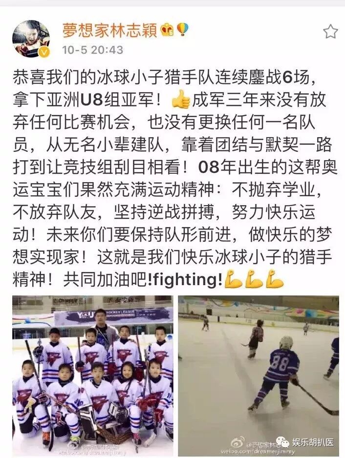 对于靠花边新闻博眼球的“常规操作”,其实胡扒医是相当反感的。因此当在花椒之夜活动上看到林志颖带着他奥众猎手冰球队的小队员们穿着冰球服、滑着旱冰鞋上场的时候,胡扒医忍不住想给小志点个赞!