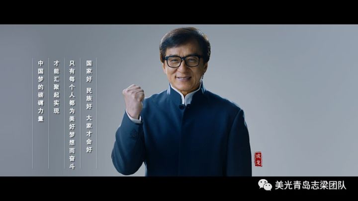 “中国梦”公益宣传片由成龙、黄晓明、李冰冰、周迅、吴京出演。演员们大气自信地诠释了他们心中的“中国梦”。