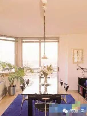 中国的宝蓝地毯,新加坡的椅子、法国巴黎古董店里的60年代的波音707飞机模型构成了餐厅的多国组合。因为喜欢,费翔不远万里地从中国买回了一块颇有中国蓝味道的地毯,铺在餐桌下面;客厅里舒适的、有些60年代风情的躺椅也是宝石蓝色的;而冷气、百叶窗轨、镜框、花盆,都是金属灰;墙面、天花板、踢脚板、百叶窗、窗帘盒,则是纯净的白色……至于家具,费翔不考虑品牌和价格,只要适合他的品位和需要——很现代的玻璃书桌、复古感觉的NOGCHI茶几、100美元的“便宜得离谱”的沙发、“贵得你想不到”的30年代的古董镜子……组合在一起有一种现代与复古融合的协调。事事求完美的费翔对家里的细节点缀也十分重视,甚至连墙上挂钟的大孝形状、颜色、数码的字体都会考虑到。经常在世界各地飞来飞去的费翔,会不会经常从各地买些纪念品回家做装饰?