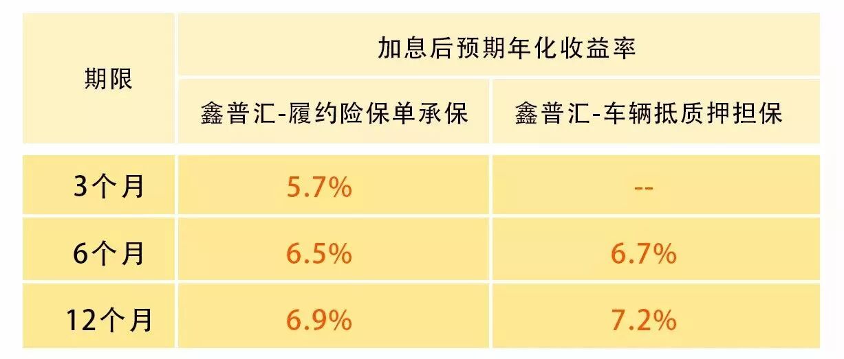 2、活动期间内,鑫财富中带有“加息”字样的项目,鑫普汇中带有“原利率+加息利率”字样的项目,均为已加息项目;列表中的利率均为加息后的利率;