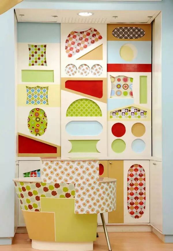 墙上的装饰都是依照小孩子的爱好来设计的,能够最大限度的吸引孩子的实现。马赛克拼凑的收银台带给人童真与欢乐。