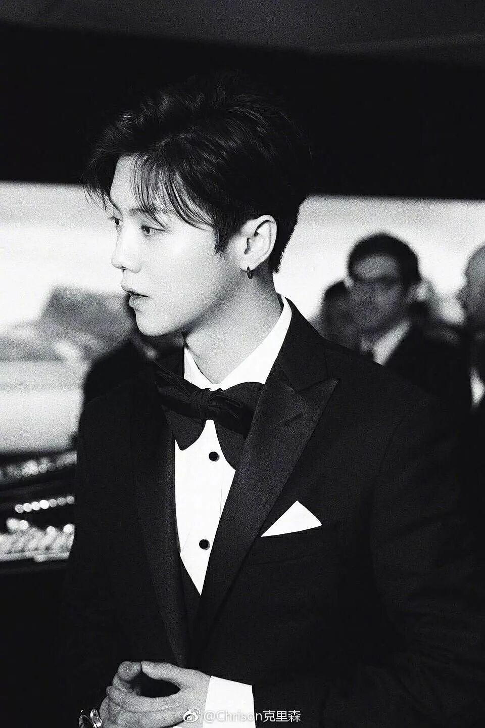 可当他在瑞士穿上正装,掀起刘海,又是另一幅温润的画面。