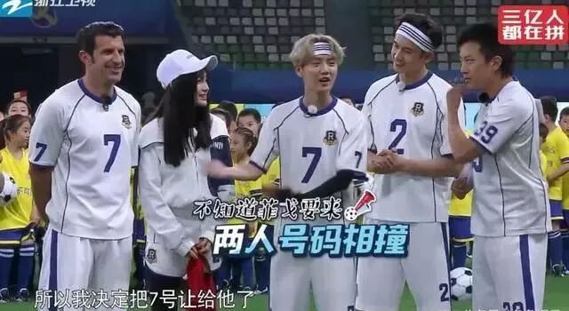 之前葡萄牙巨星菲戈空降在《跑男》时,他化身小迷弟,两人球衣相撞,便立刻把自己的号码让给对方。
