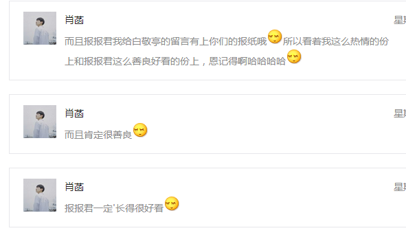 这位亲后台的留言不给你们看,但是她说她写的段子被白敬亭用了,她总是调侃这件事,还说如果我们用她的名字和留言上报,她以后就能光明正大的“黑”白敬亭了哈哈哈…我们最后上报没用她的留言和表情包,但是,签名照给你…我们帮你拉仇恨!