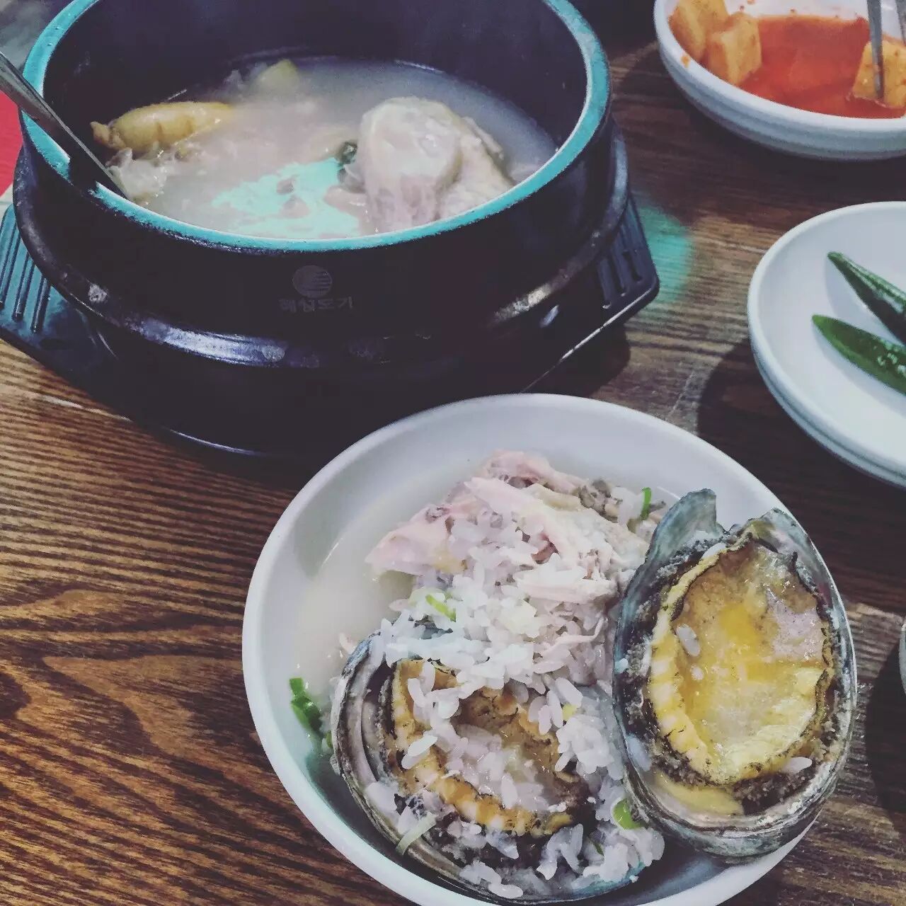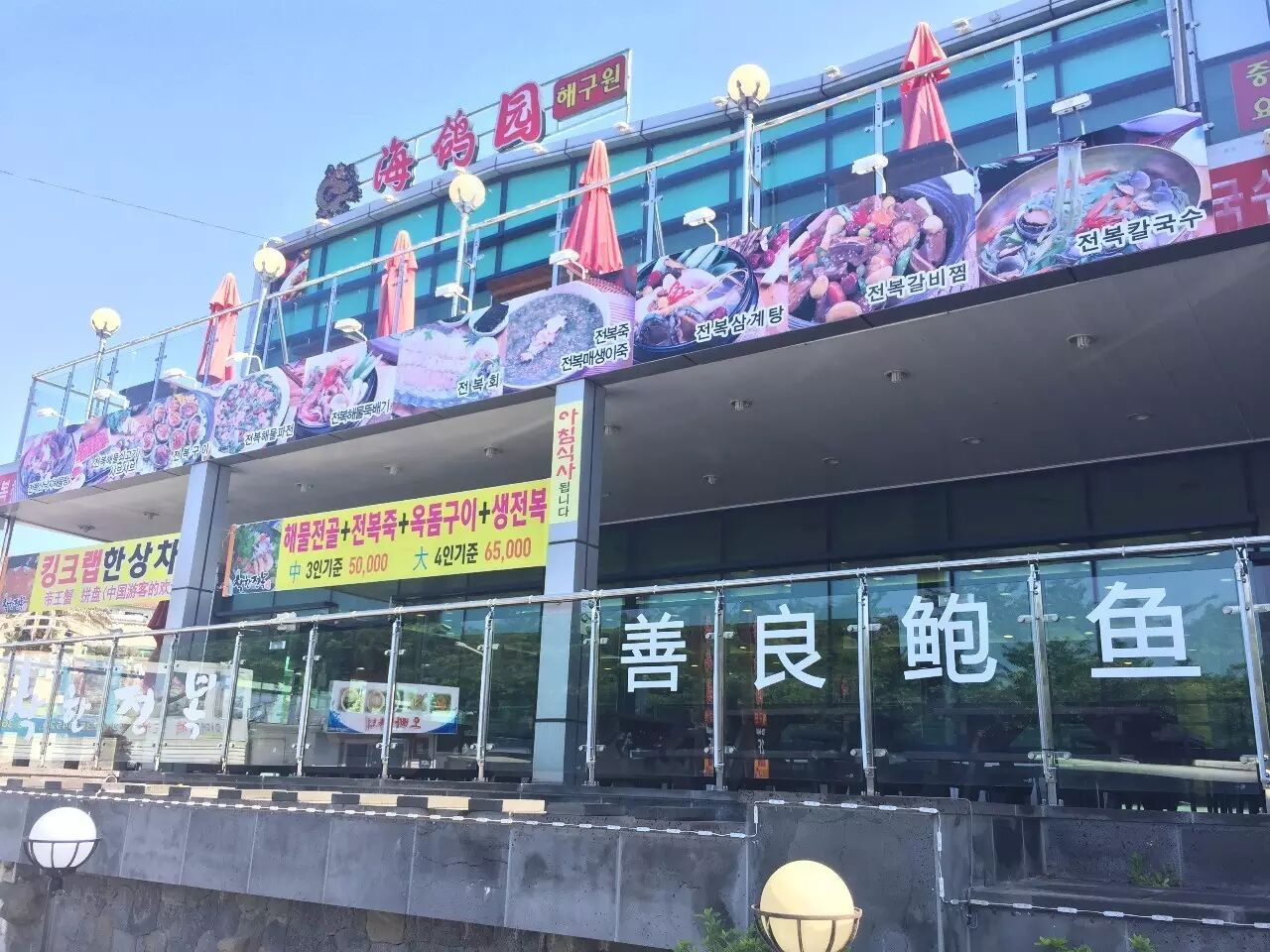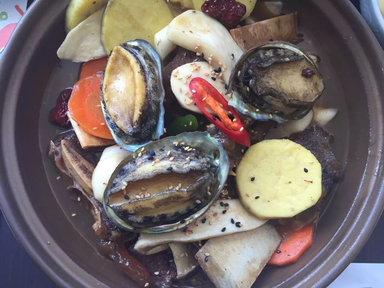 早上10点出发,济州岛也是挺小的,大概一小时。根据之前做的攻略,我们先去了一家专门吃鲍鱼的店。