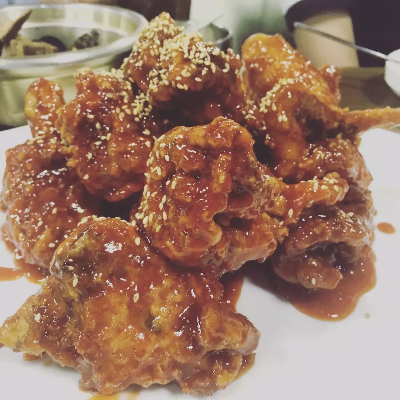 韩国炸鸡不似国内的油腻和肥厚,薄薄的面粉包裹并不死硬的鸡肉,炸得外酥里嫩。咬一口,幸福感up~