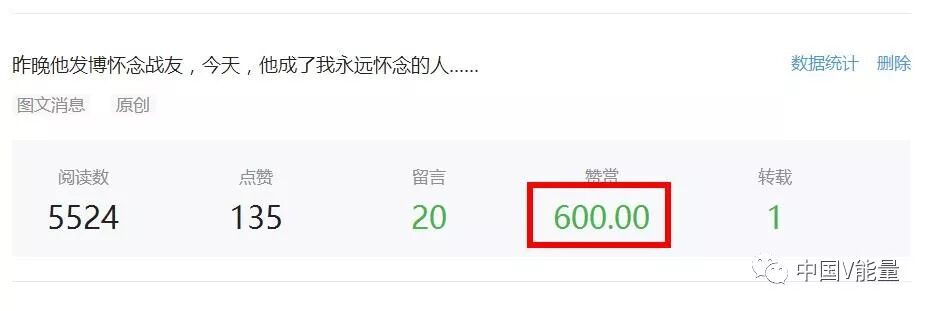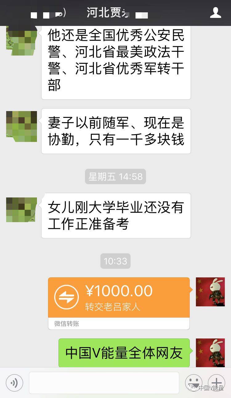 老吕,前天写了篇文章,微友们打赏了不少,我凑个整数交给贾主任让贾主任转交给嫂子,钱虽不多,也是能量君和中国V能量微友们的一点心意。
