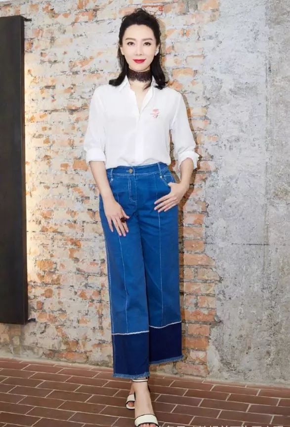 上身穿着白色衬衫简约百搭,脖子上点缀着一条蕾丝chocker瞬间提升时髦度,下身穿着蓝色阔腿长裤尽显清爽干练的气质。