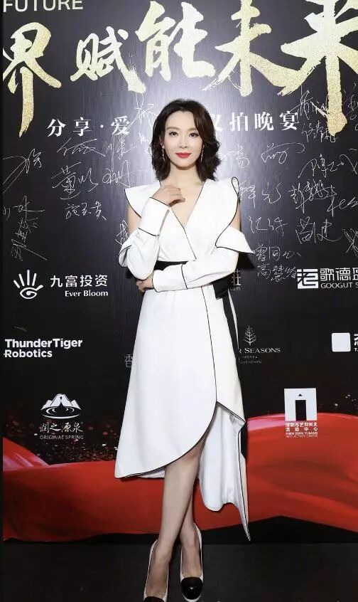 陈数身穿一袭白色长裙充满设计感,露肩设计秀出纤细的胳膊营造出楚楚动人的效果,花瓣裙则彰显浪漫的少女情怀。