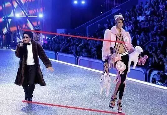 之前维密现场表演的火星哥,靠着无敌霹雳短腿抢去一片名模风头,成为全场最矮亮点: