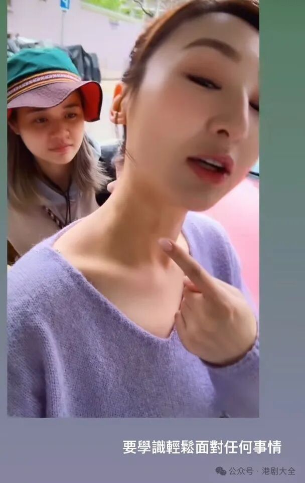 她指日前已看中医治疗,她说:「其实係淋巴结嚟,我谂一定因为我呢排唔够休息,压力大所致。」她已做了刮痧及针灸治疗,之后亦会看西医作详细检查。现时正忙于拍摄无綫新剧《武林》的她,日前与蒋祖曼在尖沙咀拍外景,两人以「姊妹装」啡色背心裙及高踭鞋上阵拍摄,手上拎住多袋战利品,不过估不到连不用埋位时所穿的平底波鞋都一样。