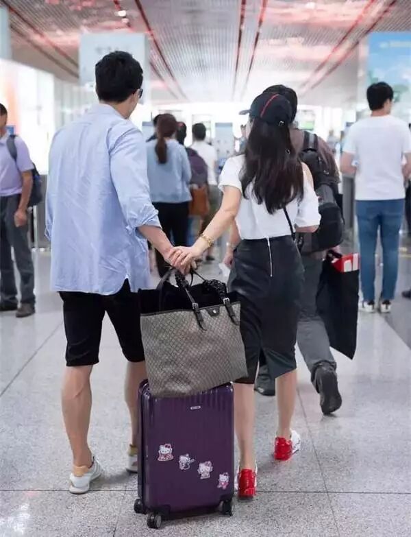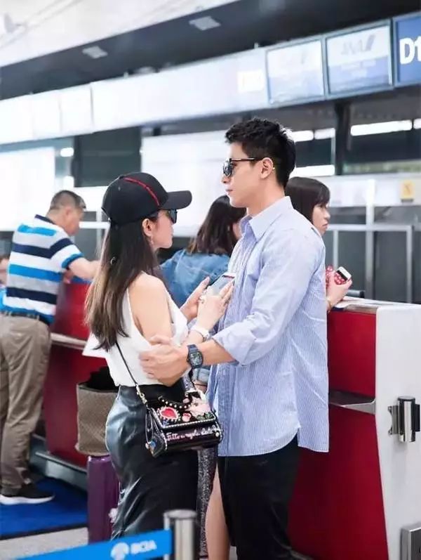 ▲在机场,也要搂搂抱抱。