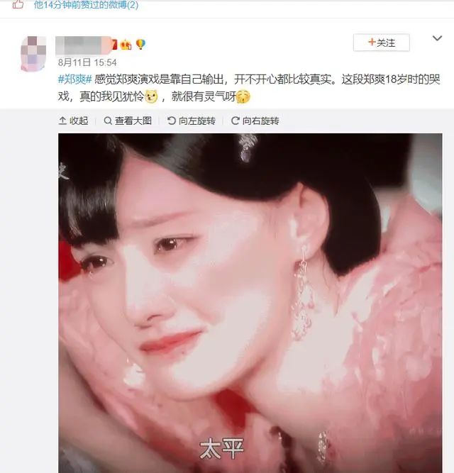 确实像郑爽自己说的那样,她在展现真实自我的路上一去不复返。8月15日郑爽还点赞了一条夸奖自己演技的动态,被网友认为是赞同这位博主说的"郑爽演戏是靠自己输出,开不开心都比较真实"。