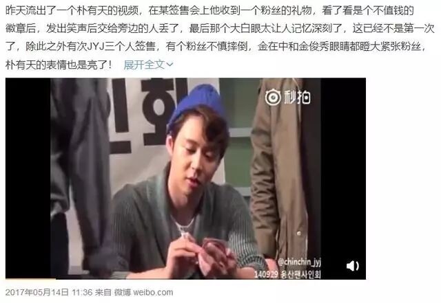 粉丝激动地送了朴有天一个徽章,但朴有天看到礼物不值钱,第一反应就是翻了一个大白眼,然后云淡风轻地对工作人员说:“扔了!”