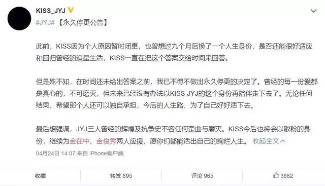 KISS_JYJ”,一个100万粉丝的大站,在深思熟虑后,选择了忍痛道别。