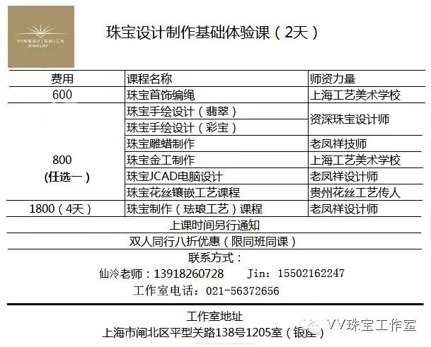 工坊现新增体验课程方便对珠宝设计行业感兴趣、但时间上不充裕的小伙伴~欢迎咨询…