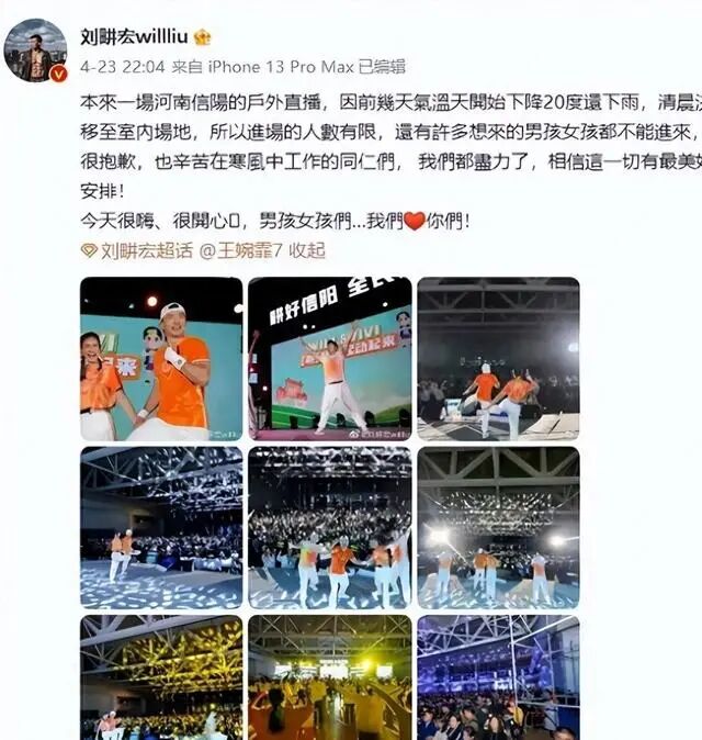而刘畊宏给出的解释是:当天天气降温,所以改成室内了。