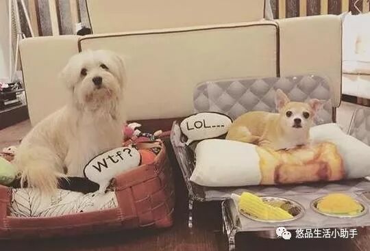 客厅摆放着的沙发是米白色的,其简单的设计让整个沙发看起来更加简约时尚。沙发的背面摆放着两个不同款式的狗窝,让整个空间充满了温馨的味道。