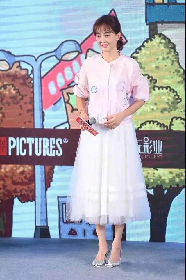 牛莉穿着一身蓬蓬裙搭配粉色外套,戴着精致的耳环,穿着一双很特别的高跟鞋,下身做出蓬蓬的设计,穿着的外套突出了腰部位置,让她的身材显得比较的瘦高,而且你会发现她虽然穿着简单的外套,但是她这样的穿搭,却让她看起来很优雅。
