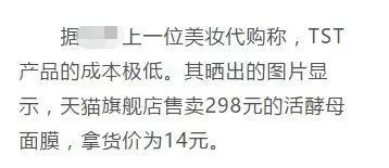 结果这两天,张庭夫妇的面膜再次引起争议,有一位美妆代购揭秘,张庭家的产品成本极低,其晒出的图片显示,售价298元的活酵母面膜,拿货价为14元。