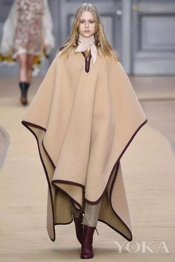 今年oversize依旧是流行要点,但变得更大更宽松,Clare Waight Keller心机地与纯色系,比如驼色与白色结合起来,并在设计上更加简约,从而使这些单品更易驾驭。