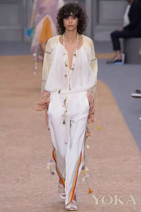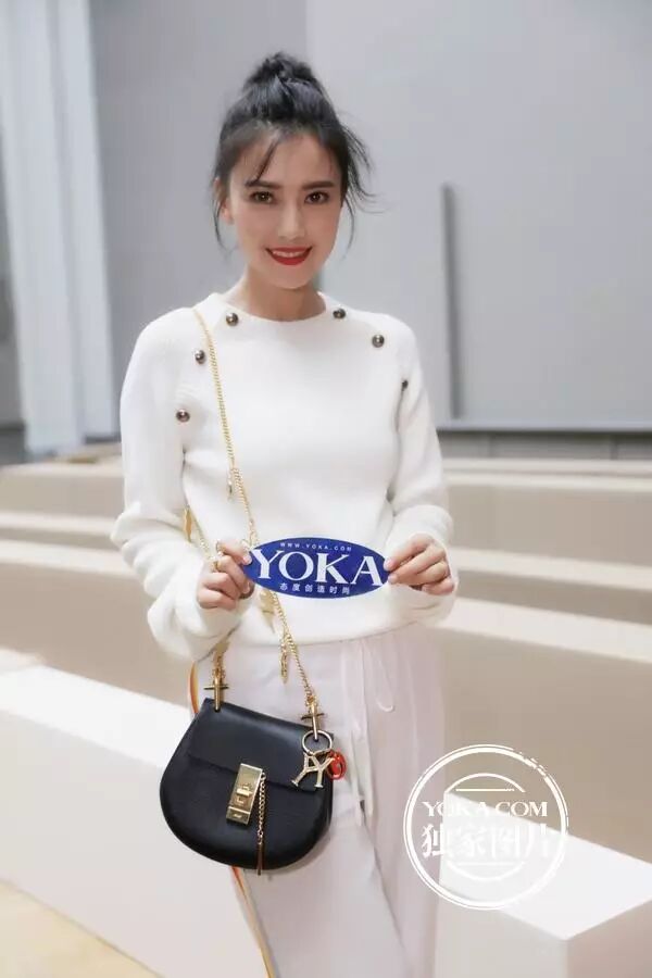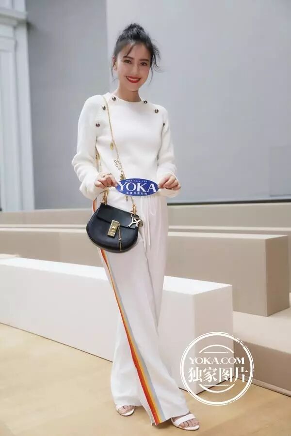 高圆圆这回机智地没有照搬秀场造型,而是用简约的白毛衣搭配Chloé 2016春夏宽松白色长裤,不得不说这种搭配更适合娴静、温柔的她,既不抢镜也不会让人忽视。