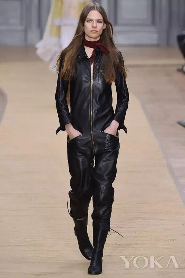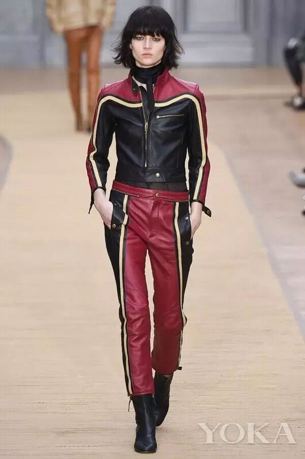 Clare Waight Keller风格总是在硬朗与柔情之间自由切换,本季的“机车套装”就是酷感女郎的最佳代言,在设计上Clare采用了颜色拼接的形式,让服装更加富含活力与时髦特性。