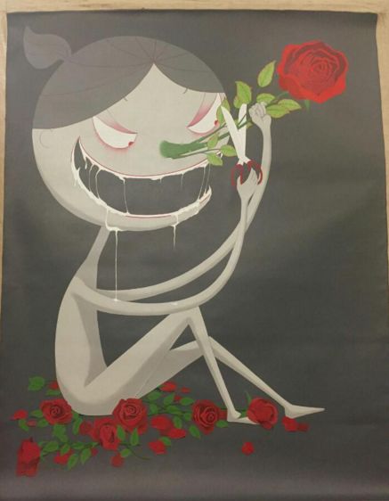 范冰冰也忍不了,一个月后,晒出了一副画,一女子凶神恶煞、满眼嫉恨地剪掉眼前一朵玫瑰的枝干,似乎要将这寄寓爱之美好的花朵摧毁殆尽。