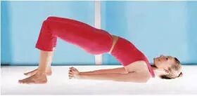 2.收紧臀部肌肉,将臀部抬离地面几寸,让身体和地面成拱型。