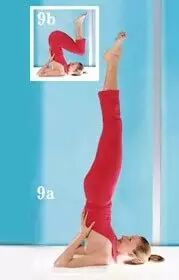 2.分别把两条腿笔直地伸向天花板,并拢双腿,想象着你把能量从头部传到脚尖了,如果这个姿势太累,就把腿弯曲一会儿,休息一下(如动作A)。如果在脖子和肩膀底下放条毛巾,会减少对这些部位的拉伸,感觉更舒适一些。