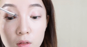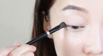 Step6、然后用一个裸棕色涂在双眼皮褶和下眼影位置,自然晕开。